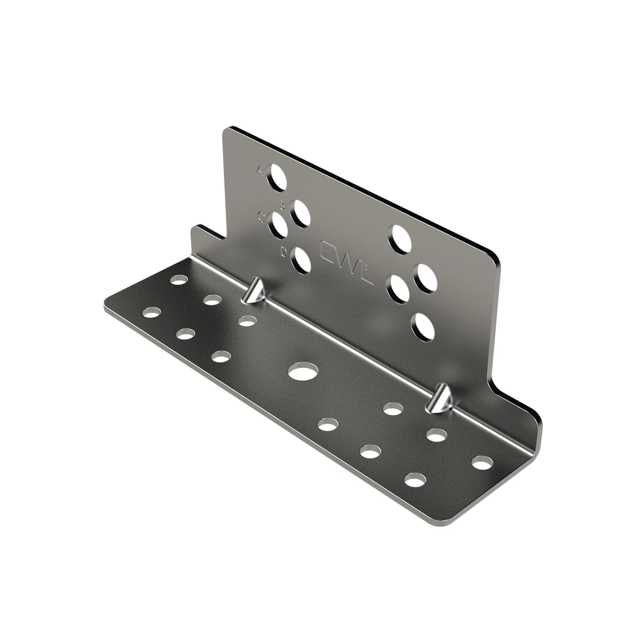 Footplate for solar panel mounts. The footplate is used as an attachment to the load-bearing underlay roof (tongue-in-groove board). On the footplate there is a perforated plate marked with letters. Our smart perforated plate on the brackets is an extra help to the installer, ensuring that the installation is done quickly and correctly.