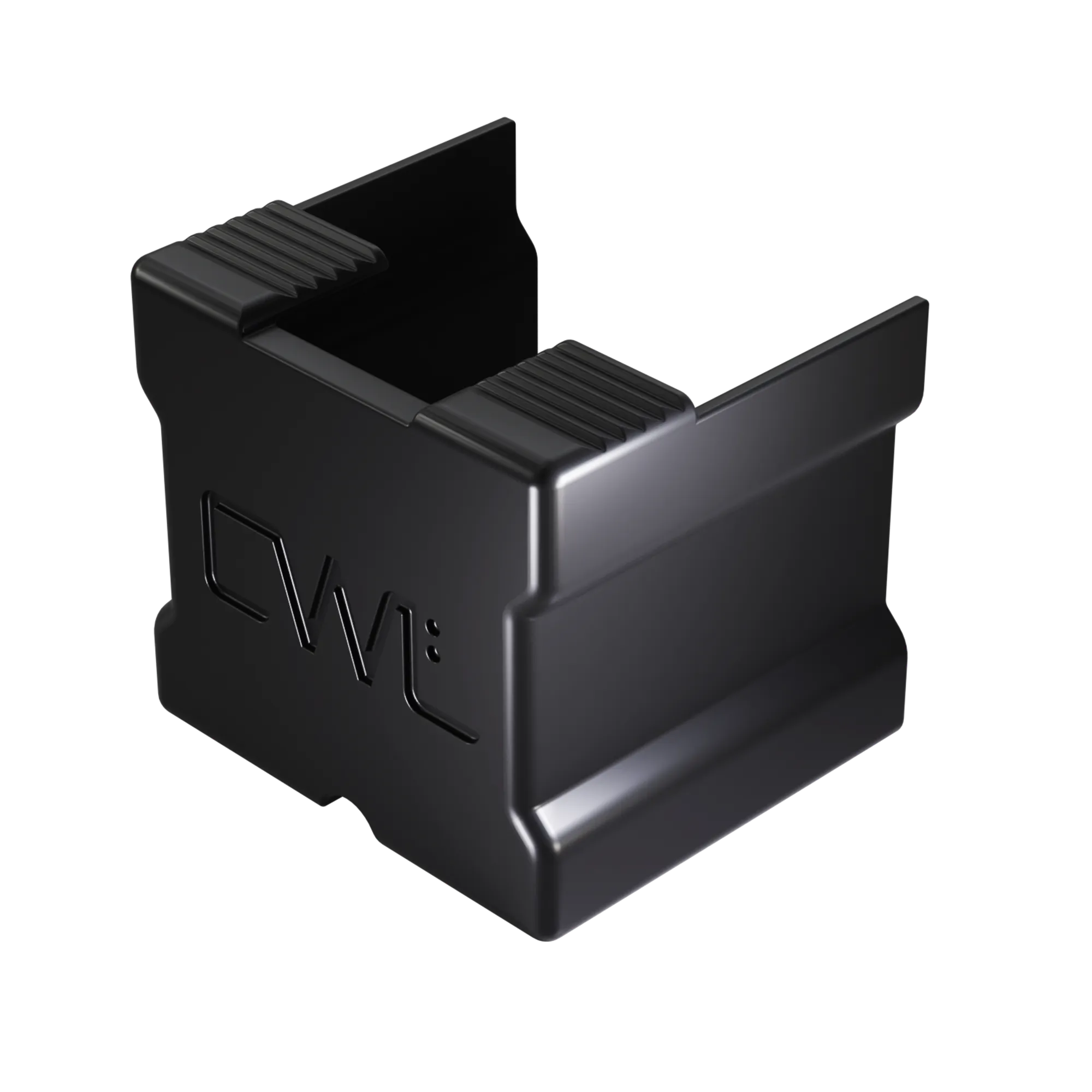 Ändlock till solpanelskena. Ändlocket används till att täcka skenans öppning vid montaget. Ändlocket fixeras med ändklämman.